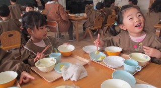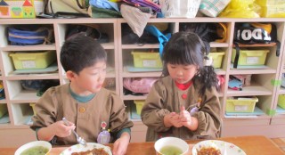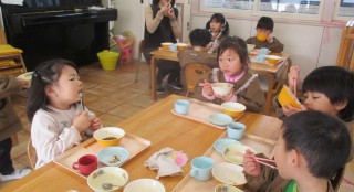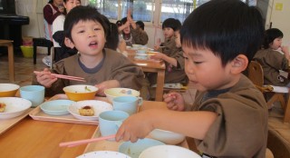 おもち(きなこ・あんこ・しょうゆ) ゆかりごはん(乳児・年少・年中のみ) 豚汁 お浸し牛乳 せんべい今日の給食風景😊今日...