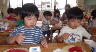前日雨が降り、天候があまり良くなかったため遠足ごっこは室内で過ごしました。リズム室で体を動かして遊んだり、各部屋でコーナ...