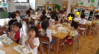 ごはん 肉じゃが きしめん汁 みそあえ野菜ジュース チーズ せんべい食事前のご挨拶もしっかり出来ている子どもたち😊今日は...