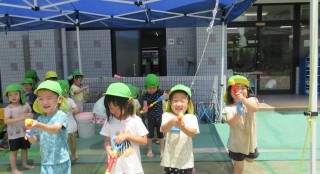 暑い日はお水で遊ぶのがとっても気持ちいいよね💓水鉄砲どこまで届くかな?ねらいを定めて「え~い!」 お給...