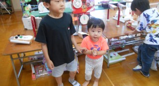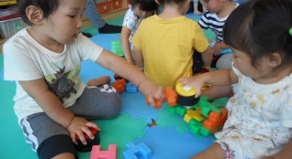 室内では友だちと協力しながらソフトブロックを繋げて道路を作って遊んでいます。長くしようと一生懸命頑張っています!友だちと...