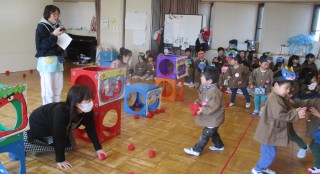 2月3日の節分にちなんで豆まきをしました。みんな自作のお面をつけての参加です。節分の由来を紙芝居で聞きました。「みんなが...