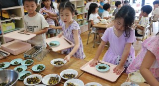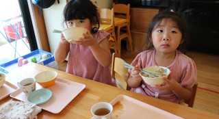 箸を使って食べる練習を頑張っているこすもす組さん。ほとんどの子が補助箸や普通箸を使って食べられるようになってきました♪ ...