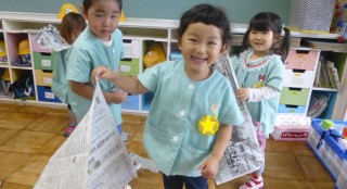 お部屋の中で新聞遊びをしました!!細く破ったり丸めたり・・・破った形を見て『なんかクモ見たいだね~!』と言う子も😉リボン...