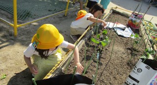 きりん組のみんなで枝豆の種をまきました。種まきのやり方が分からなかったのですが、先生の真似をしながら興味津々でやっていた...