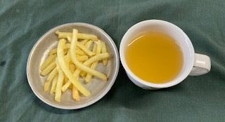 五目ごはん みそ汁 ごま和え ヨーグルトフライドポテト りんごジュース