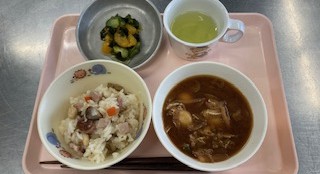 かみかみライス 五目汁 酢の物ういろう 牛乳