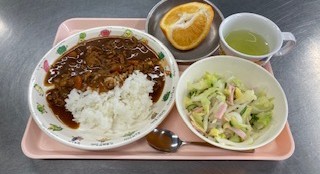 米粉ロール カレーシチュー ツナサラダ みかん牛乳 野菜蒸しパン