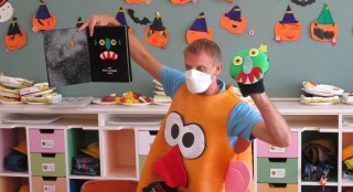 今日は英語のケニー先生と一緒にハロウィンを楽しみました。ハロウィンにちなんだ絵本を読んでもらったり・・・かぼちゃのボール...