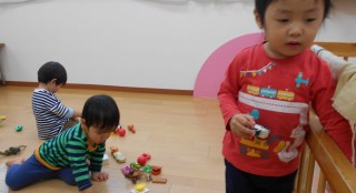 室内遊びの人気のおもちゃは1位は車、2位はままごと、3位は絵本です。「写真とるよ。こっち向いて。ハイ、ポーズ!」と言って...