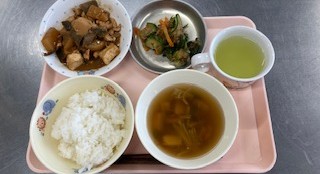 ごはん 煮魚 すまし汁 切り干し大根とひじきのサラダ牛乳 ☆あべかわマカロニ