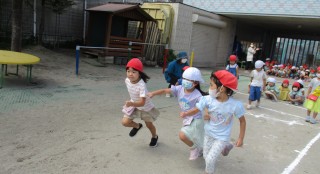 運動会が近づき元気いっぱいに外で活動しています。かけっこでは一番目指して頑張って走っています。転んでもすぐ起き上がって走...