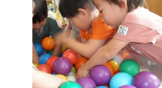 ももぐみ、りんごぐみで、誕生会のゲームをしました(*^_^*)ボールの中にアンパンマンのキャラクターがかくれんぼしていま...