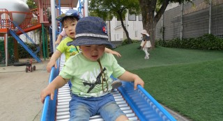 外遊びが大好きな一時保育の子どもたち。本園の園庭のことを公園と思ってます(笑)園庭の芝生のお山を登ったり下りたりを楽しん...