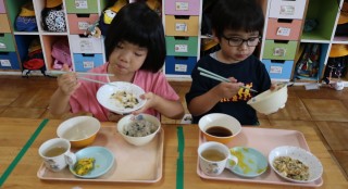 朝の乳児組のおやつバナナ 牛乳今日の給食わかめごはん 炒り豆腐 みそ汁 かぼちゃサラダ豆乳パンナコッタ 今日の...