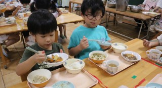 朝の乳児組のおやつ0歳児は月齢にあった赤ちゃんおやつオレンジ 牛乳今日の給食ごはん マーボーなす 春雨サラダ 野菜スープ...