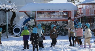 前日の夜から降り積もった雪⛄子どもたちは登園してくるといつ遊びにいくの?とルンルン💗さぁ、外に出てきたとたんに雪合戦開始...
