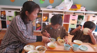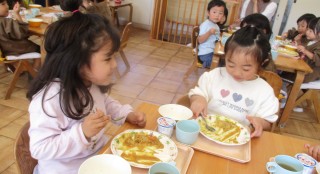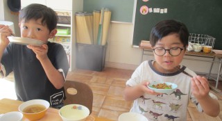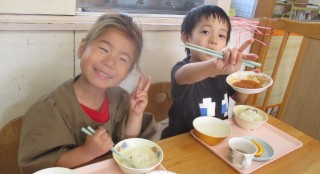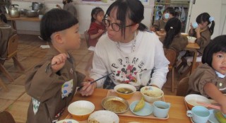 ひじきごはん みそ汁 ごまあえ牛乳 お好み焼き今日の給食風景😊年長児は自分で給食を取りに来たり、配膳のお手伝いもしてくれ...