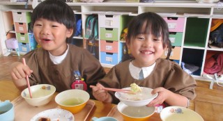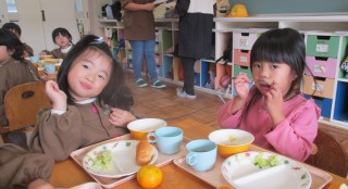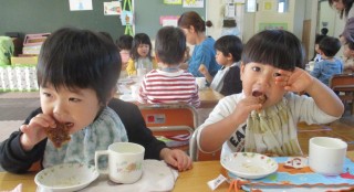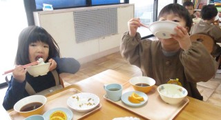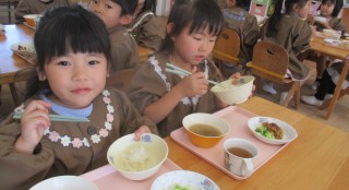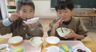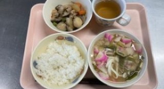 ごはん ひじきの炒め煮 すまし汁 ばなな牛乳 鬼まんじゅう給食の前は手洗い✨石鹸を使って綺麗に洗えていますね。 今日は味...