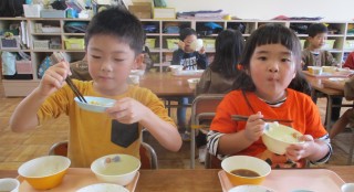 ごはん とりすき風煮 みそ汁 酢の物牛乳 大学芋今日の給食です😊 みんなと楽しく会話をしながら食事を楽しむ子どもたち...