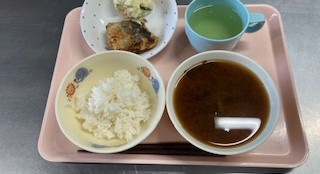 ごはん みそ汁 さわらの竜田揚げ ポテトサラダ牛乳 茹でとうもろこし