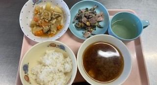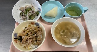 豚丼 のっぺい汁 ゆかりあえ メロン牛乳 かりんとう