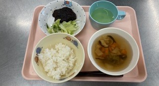 ごはん さわらの揚煮 五目汁 ごまあえ二色ゼリー