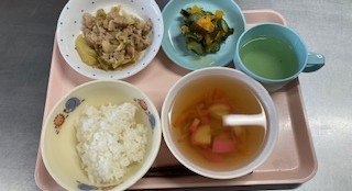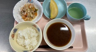 豚肉とじゃが芋のきんぴら みそ汁 バナナ牛乳 あべかわマカロニ