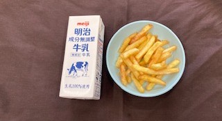 鶏肉の甘辛丼 みそ汁 ツナサラダ牛乳 ポテトフライ