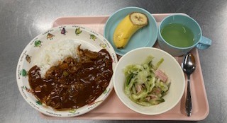 ハヤシライス 春雨サラダ バナナ牛乳 カステラ