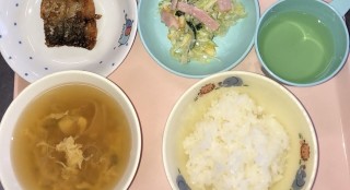 油淋鶏 付け合わせ 春野菜スープ りんご牛乳 ドーナツ