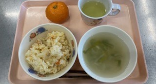 もち(ゆかりごはん) 豚汁 ごま和え みかん牛乳 ポテトスナック