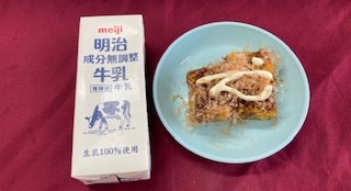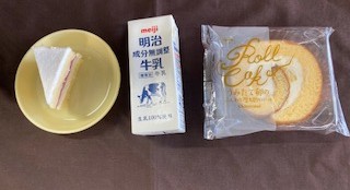 チキンカツ 春雨スープ 付け合わせ牛乳 ロールケーキ