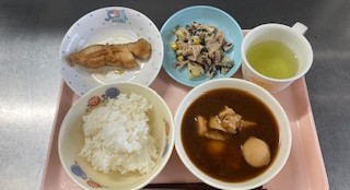 ごはん 高野豆腐と豚肉の含煮 のっぺい汁 ゆかりあえプリン