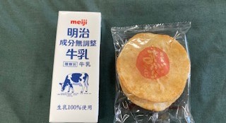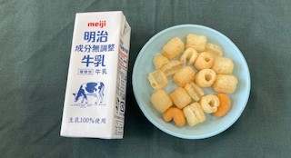 肉じゃが みそ汁 ツナサラダ牛乳 あられ