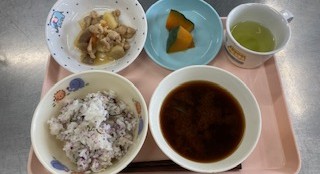 しそごはん みそ汁 炒り鳥 かぼちゃの含め煮アイスクリーム