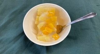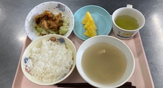 ごはん 油淋鶏 オニオンスープ パイナップルケーキ 牛乳