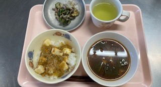 和風マーボー丼 みそ汁 ゆかりあえピザパン 牛乳