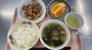 ごはん とろみ汁 炒り鶏 ぽんかん野菜ジュース いかせんべい