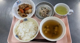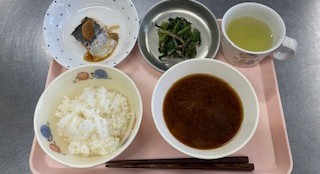 ごはん 根菜汁 煮魚 ごまよごしぶどうゼリー
