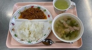 ドライカレー 冬野菜スープ (写真にはありませんが)ヨーグルトりんごジュース ☆レンコンチップ