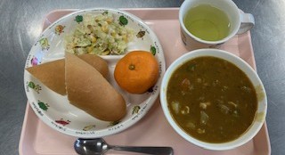 米粉ロール カレーシチュー ツナサラダ みかん牛乳 野菜蒸しパン