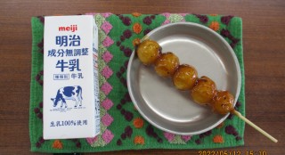 【給食】ごはん とりすき風煮 五目汁 納豆和え牛乳 みたらし団子