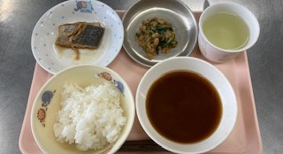 ごはん みそ汁 煮魚 切干大根の納豆あえ牛乳 ソフトせんべい