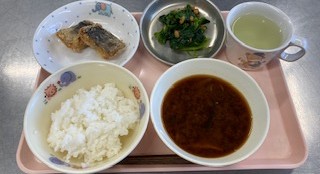 ごはん みそ汁 さわらの竜田揚げ 納豆あえ牛乳 五平餅