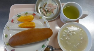 ロールパン 鶏肉と白菜のシチュー 大根サラダ オレンジゼリー