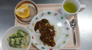 ハヤシライス ブロッコリーサラダ いよかんクッキー 牛乳