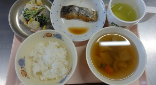 ごはん けんちん汁 煮魚 ポテトサラダせんべい 飲むヨーグルト
