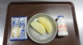 ごはん じゃが玉の肉炒め 春雨スープ ひじきのナムル牛乳 選べるお菓子(お菓子は変更になりました)