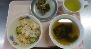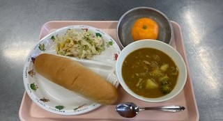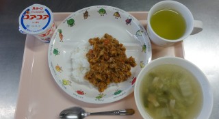 ドライカレー 冬野菜スープ ヨーグルトマカロニきな粉 牛乳*給食のメニューに変更がありました。